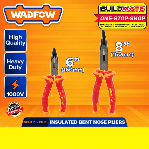 BUILDMATE Wadfow Insulated Bent Nose Pliers 6" Inch | 8" Inch Wire Stripper Bolt Cutter Hand Tool Pliers for Wire Wrapping Nose Pliers Precision Pliers Wire Bending Pliers Long Nose Cutting Tools Electrician Pliers WPL4936 | WPL4938 • WHT