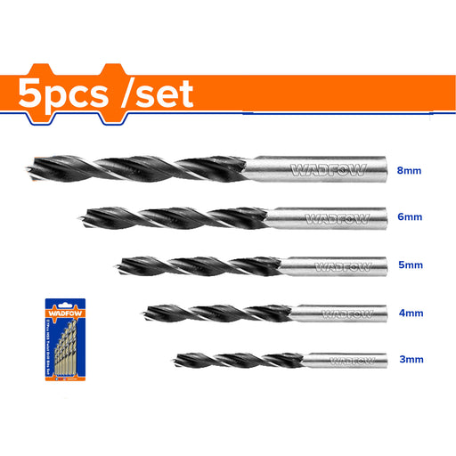 BUILDMATE Wadfow 5PCS Wood Drill Bits Set 3MM - 8MM Diverse Woodworking Drilling WSJ3K01 • WHT