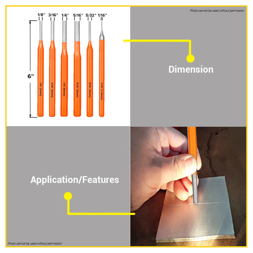 Work LampBUILDMATE Wadfow 6PCS 6" Inch Pin Punch Set Hole Punching Pen Woodworking Tools 1.5MM - 3MM Round Head Cylindrical 40Cr-Steel Repair Tool WCC8306 •...