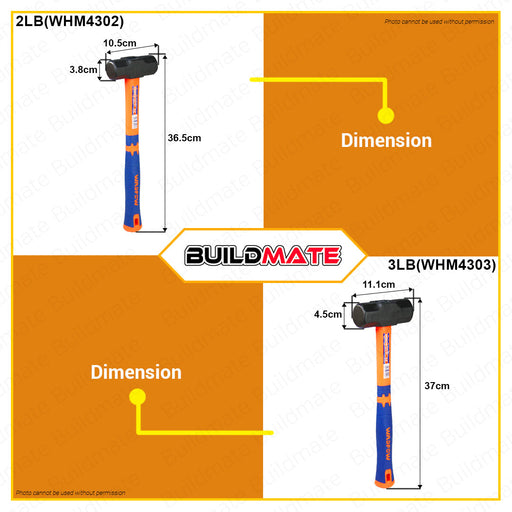 Buildmate Online DepotBUILDMATE Wadfow Sledge Hammer Stoning Maso 2LB | 3LB | 4LB [SOLD PER PIECE] Fiberglass Handle Large Tool for Wall Smashing and Wall Demolition Ste...
