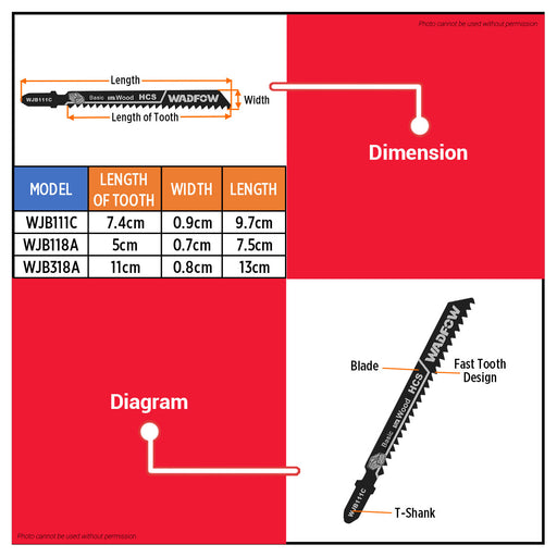 BUILDMATE Wadfow 5PCS/SET Jig Saw Blade for Wood | For Metal Fine Curve Straight Basic for Clean Cut Saw Blades Wood Cutting WJB111C | WJB118A • WHT
