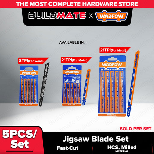 Buildmate Online DepotBUILDMATE Wadfow 5PCS/SET Jig Saw Blade for Wood | For Metal Fine Curve Straight Basic for Clean Cut Saw Blades Wood Cutting WJB111C | WJB118A • WH...