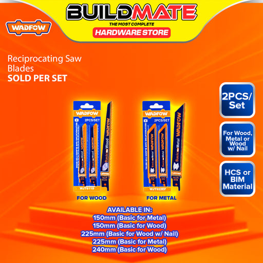 Buildmate Online DepotBUILDMATE Wadfow 2PCS/SET Reciprocating Saw Blades Basic for Wood / for Metal / For Wood with Nails Wood & Metal Cutting Blade SOLD PER SET - W...