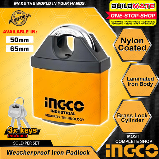 Buildmate Online DepotBUILDMATE Ingco Weatherproof Laminated Padlock 50MM | 65MM Laminate Padlock Pad Lock Keyed Padlock Solid Brass Lock Cylinder with 3pcs Iron Keys Wi...