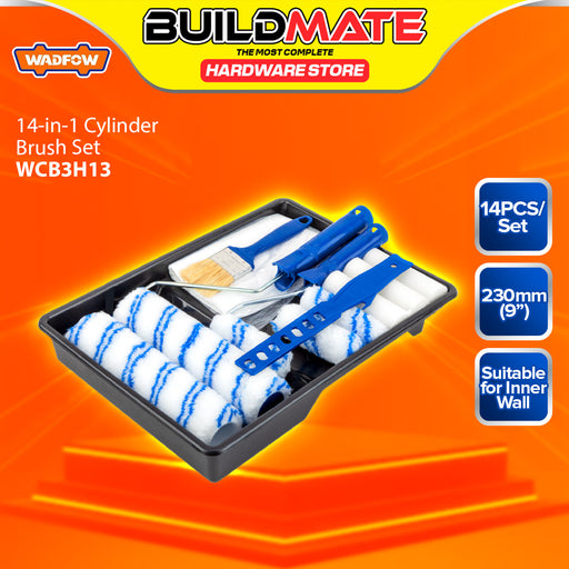 Buildmate Online DepotNo reviewsBUILDMATE Wadfow 14-in-1 Cylinder Brush Set Multi-purpose Brush WCB3H13 - WHT SPECIFICATION:►Model: WCB3H13►Suitable for inner wall►2 Pcs 230mm (9"...