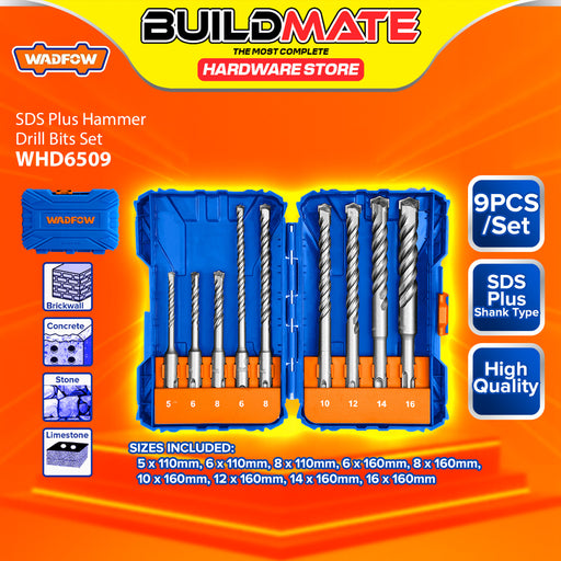 Buildmate Online DepotBUILDMATE Wadfow 9pcs SDS Plus Hammer Drill Bits Set Heavy Duty Concrete & Masonry Drilling Power Tool Accessories For Rotary Hammer WHD6509 - ...