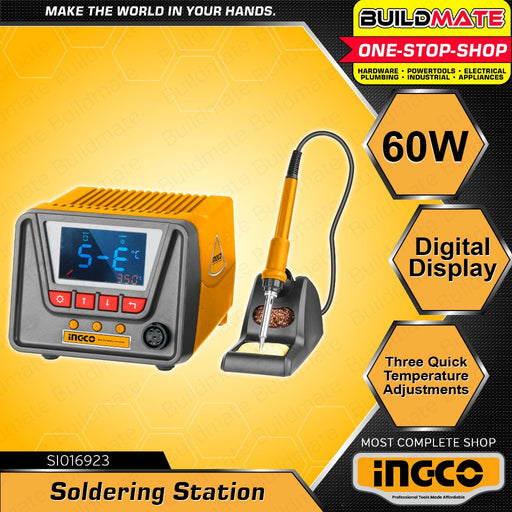 Buildmate Online DepotBUILDMATE Ingco 60W Soldering Iron Station Straight Tip Head Adjustable Temperature Rework Electric Welding Iron Holder Set SI016911 | SI016923 • I...