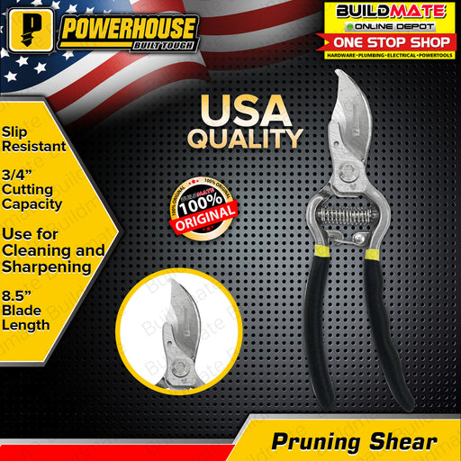 Buildmate Online DepotPOWERHOUSE USA Pruning Shear Garden Scissor Plant Cutter Pruner 8-1/2" •BUILDMATE• PHHTSPECIFICATIONS:►8.5" Blade length►Drop Forged►Shear►Material...