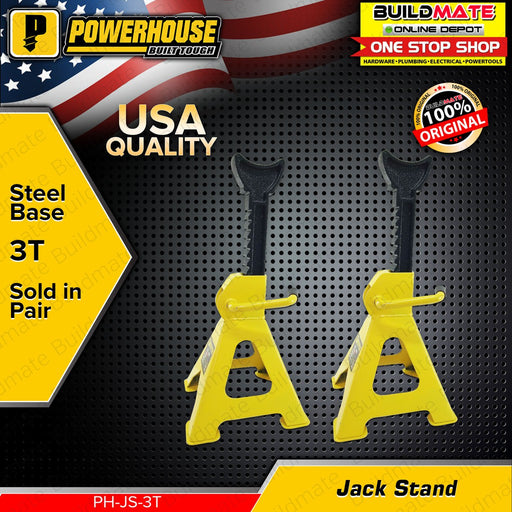 Buildmate Online DepotPOWERHOUSE Jack Stand 3T PH-JS-3T SOLD BY PAIRS •BUILDMATE• SPECIFICATIONS:►3T►Steel Base FEATURES: ►Sturdy Build: Made with high-quality material...