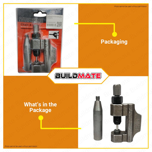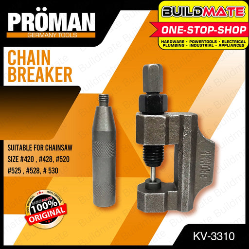 Buildmate Online DepotPROMAN GERMANY Chain Breaker KV3310 100% ORIGINAL / AUTHENTIC •BUILDMATE• SPECIFICATIONS: ►Model: KV-3310 ►Suitable for Chainsaw size #420 , #428,...