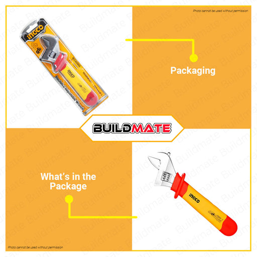 Buildmate Online DepotINGCO 8" Insulated Ratchet Wrench Protection Adjustable Electrician Wrench 1000V Industrial VDE Certification HIADW081 •BUILDMATE• IHT SPECIFICATIO...