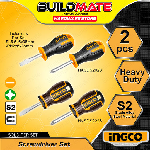 BUILDMATE Ingco 2pcs Screwdriver Set Slotted and Phillip Screw Driver S2 Round Shank Household Tool Kit SOLD PER SET - IHT