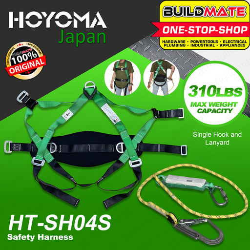 Buildmate Online DepotHOYOMA JAPAN Single Safety Harness FULL BODY HT-SH04S •BUILDMATE• HHT SPECIFICATIONS:►Max Weight Capacity: 310lbs►Single Hook and Lanyard with Sho...