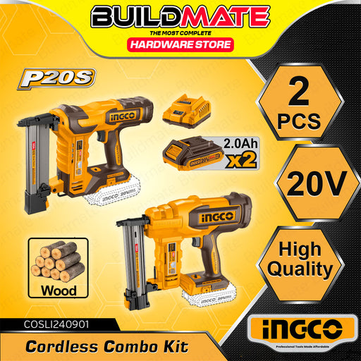 BUILDMATE Ingco 2pcs Cordless Combo Kit Brad Nailer With Crown Stapler Power Tool Set COSLI240901 - ICPT