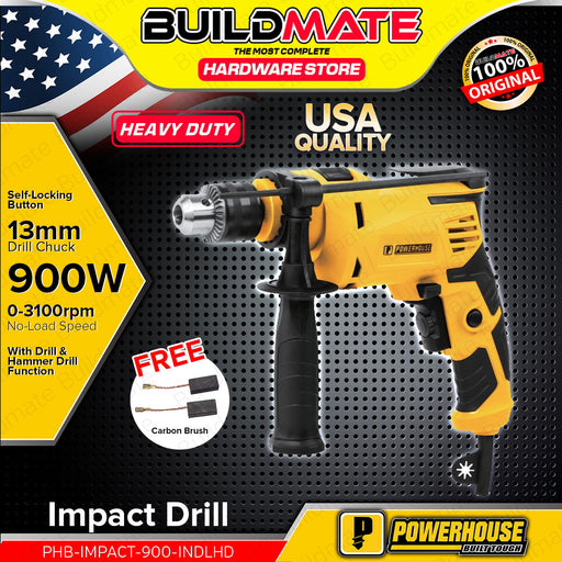 BUILDMATE Powerhouse 900W Heavy Duty Impact Drill With Hammering & Drilling Function 13mm Electric Percussion Hammer Rotary Drill PHB-IMPACT-900-INDLHD - PHPT