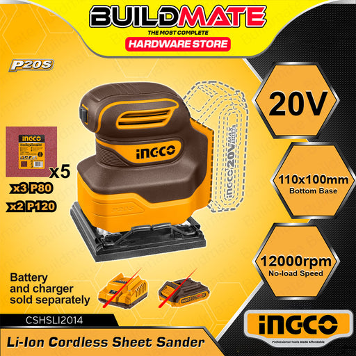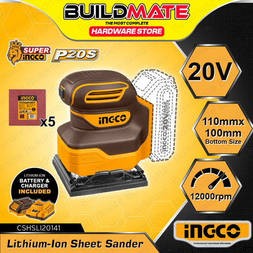 Buildmate Online DepotBUILDMATE Ingco Lithium-Ion Cordless Sheet Sander 20V Rechargeable Handheld Finishing Palm Wood Sanding Machine - ICPT AVAILABLE IN:►UNIT ONLY - CS...