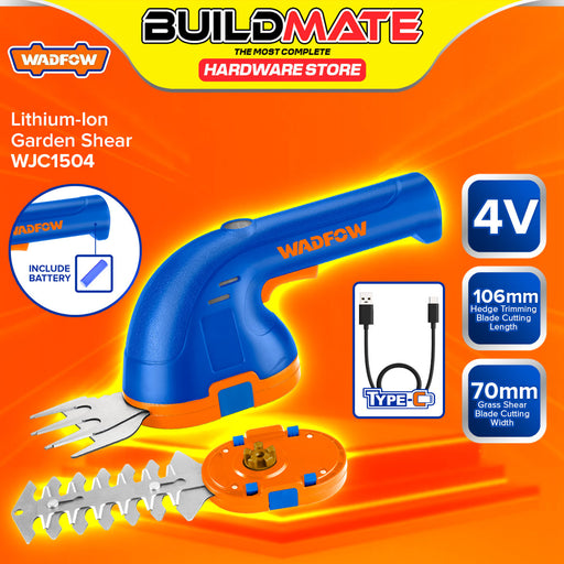Buildmate Online DepotBUILDMATE Wadfow Lithium-Ion Cordless Garden Shear 4V Rechargeable Compact Hedge Trimmer Grass Shear Gardening Tool WJC1504 - WCPT SPECIFICATION:►M...
