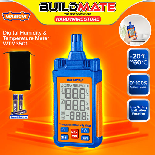 BUILDMATE Wadfow Digital Humidity & Temperature Meter -20°C~60°C Digital Hygrometer Thermometer Sensor Detector Temperature Gauge Monitor WTM3501 - WPT