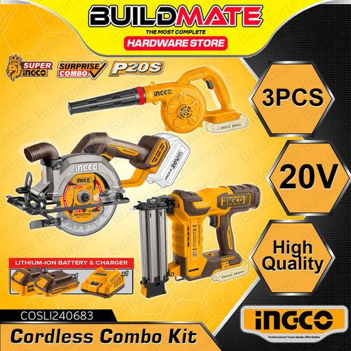 BUILDMATE Ingco 3pcs Cordless Combo Kit 20V Lithium-Ion Blower with Brushless Circular Saw & Brad Nailer Power Tool Combo Set COSLI240683 - ICPT