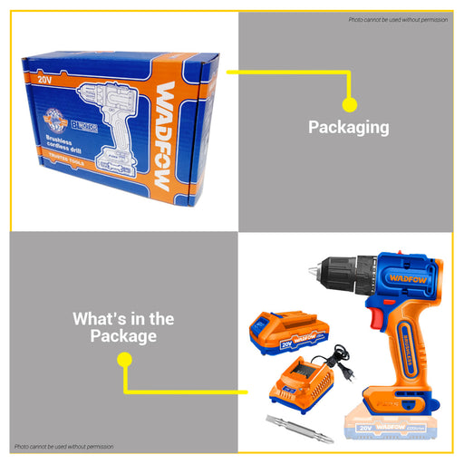 Buildmate Online DepotBUILDMATE Wadfow 20V Brushless Lithium-Ion Cordless Drill 0.8-10mm 2 Speed Gear Rechargeable Hand Drill Driver Power Tools WCDP5521 - WCPT SPECIFIC...