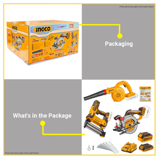 Buildmate Online DepotBUILDMATE Ingco 3pcs Cordless Combo Kit 20V Lithium-Ion Blower with Brushless Circular Saw & Brad Nailer Power Tool Combo Set COSLI240683 - ICP...