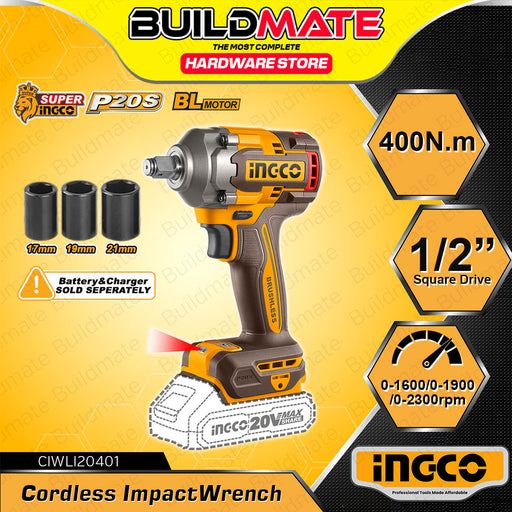 Buildmate Online DepotBUILDMATE Ingco Lithium-Ion Brushless Cordless 20V Impact Wrench 400N.m Rechargeable Automotive Torque Wrench Driver - ICPT AVAILABLE IN:►UNIT ONLY...