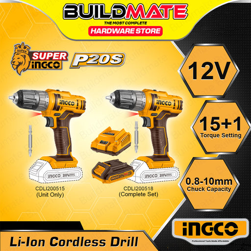Buildmate Online DepotBUILDMATE Ingco Lithium-Ion Cordless Drill 20V 2-Speed Gear High Torque Rechargeable Drill Driver Power Tools - ICPT AVAILABLE IN:►UNIT ONLY - CDLI...
