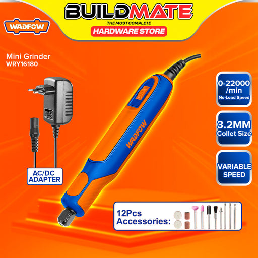 Buildmate Online DepotBUILDMATE Wadfow Mini Die Grinder 18V with 12pcs Accessories Kit Electric Portable Compact Grinding Engraver Rotary Tool WRY16180 - WPT SPECIFICATI...