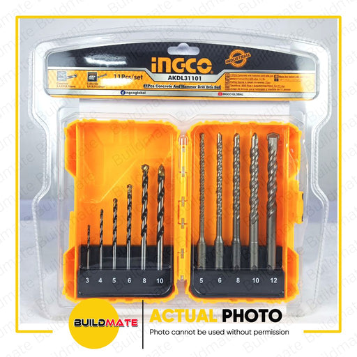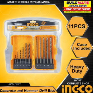 Buildmate Online DepotINGCO Concrete and Hammer Drill Bits Set 11PCS/SET AKDL31101 •BUILDMATE• IHT SPECIFICATIONS: ►11PCS Concrete And Hammer Drill Bits Set ►6pcs - Size...