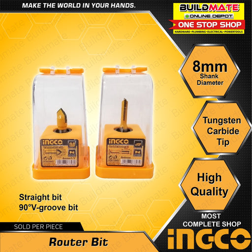 INGCO Router Bit Straight | 90°V-groove Tungsten Carbide Tip 8mm Shank SOLD PER PIECE •BUILDMATE• IHT