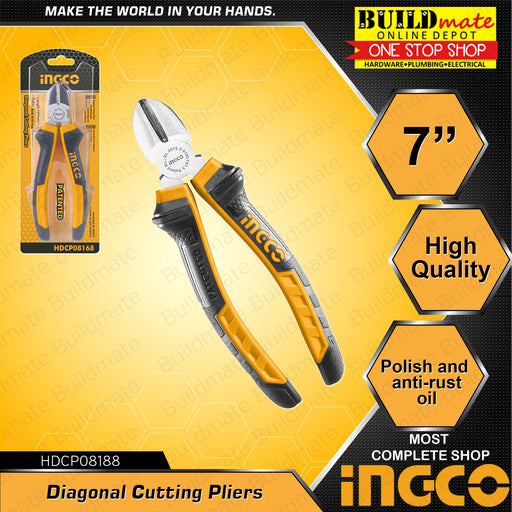 Buildmate Online DepotBUILDMATE Ingco Diagonal Cutting Pliers 7" / 180mm Electric Plier Wire Cutting Tools HDCP08188 • IHTSPECIFICATIONS:►Size:7"/180mm ►Polish and anti-...