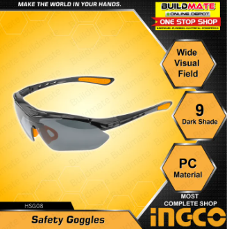Buildmate Online DepotINGCO Safety Goggles HSG08 •BUILDMATE• SPECIFICATIONS: ►Material: PC ►Dark Shade: 9 ►Lightweight, Comfortable to wear ,wide visual field