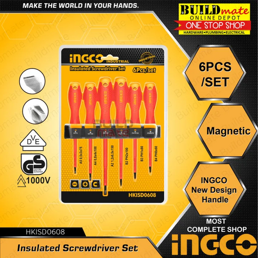 Buildmate Online DepotINGCO 6PCS/SET Insulated Screwdriver HKISD0608 •BUILDMATE• IHT SPECIFICATIONS: SL3.0x75, SL4.0x100, SL6. x150 PH0x60, PH1x80, PH2x100 INGCO new d...
