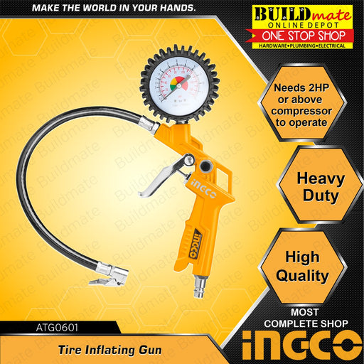 Buildmate Online DepotINGCO Tire Inflating Air Gun Tire Inflator Pneumatic Air Pressure Compressor ATG0601 •BUILDMATE• IHT SPECIFICATIONS:►Needs 2HP or above compressor ...