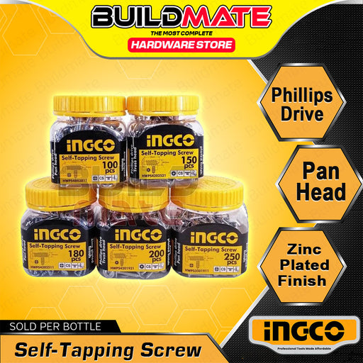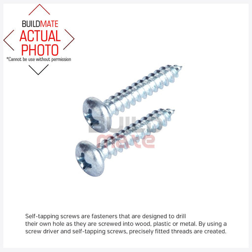 BUILDMATE Self Tapping Screw Zinc Plated Phillips Drive Self Tappers Pan Head Metal Screw SOLD PER BOTTLE - IHT
