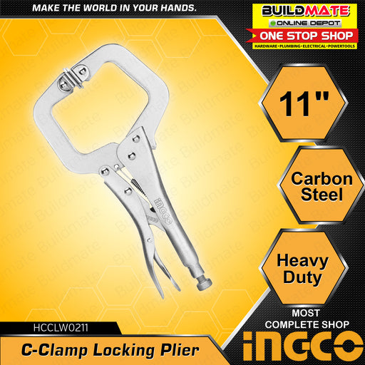 Buildmate Online DepotINGCO C-Clamp Locking Plier 11" HCCLW0211 •BUILDMATE• IHTSPECIFICATIONS:►Size: 11"►Carbon Steel►HRC40-HRC50►Weight: 790gFEATURES:►Drop forged tempe...