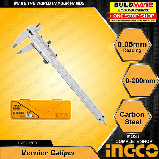 Buildmate Online DepotINGCO Vernier Caliper 0-200mm HVC01200 •BUILDMATE• IHT ►Range:0-200mm ►Reading:0.05mm ►Material:Carbon steel