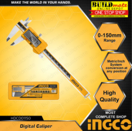Buildmate Online DepotBUILDMATE Ingco Digital Caliper 0-150mm Range Metric/Inch System Conversion Ruler HDCD01150 • IHTSPECIFICATIONS:►Range: 0-150mm►Metric/Inch System ...