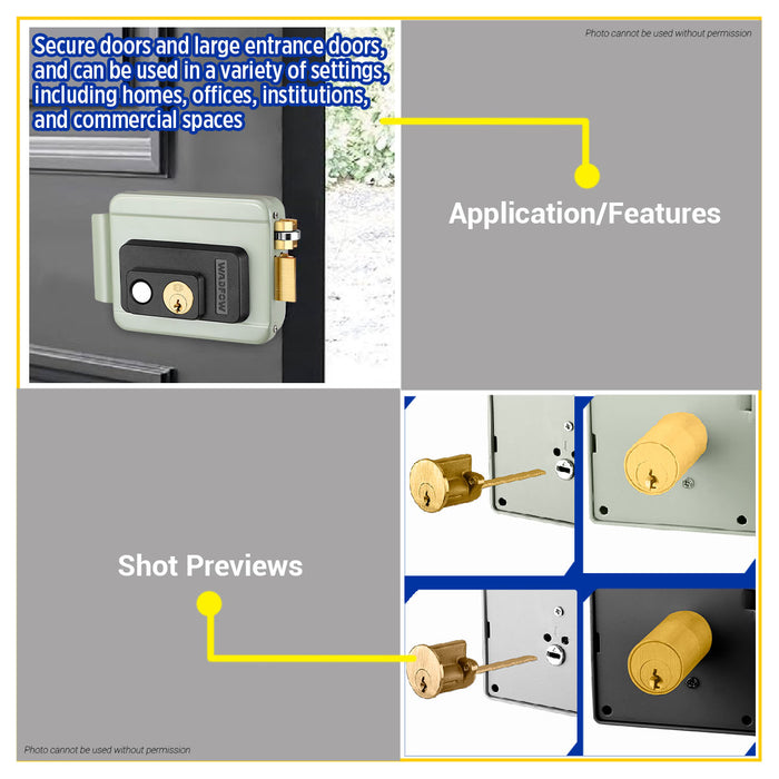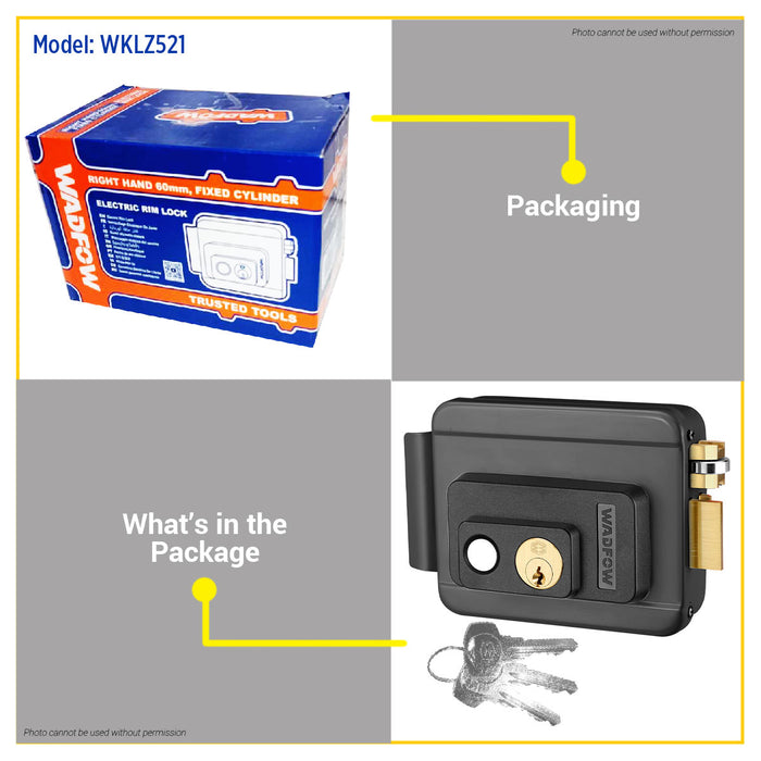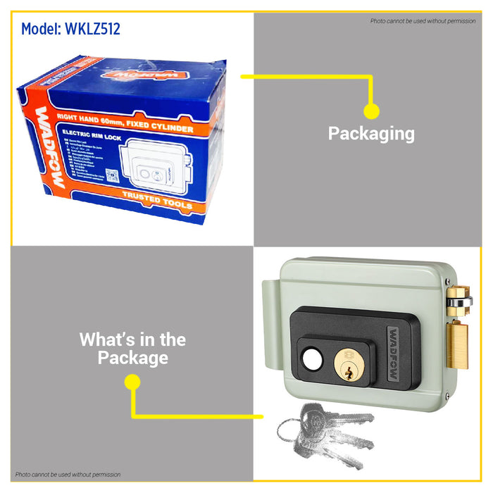 BUILDMATE Wadfow Electric Rim Lock 60mm Loose / Fixed Cylinder Right Hand Opening With 3pcs Brass Keys Electronic Security Rim Mounted Gate Door Auto Lock - WHT