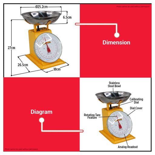 PowerHouse 20kg Mechanical Measuring Weighing Scale with Removable Pan Manual Analog Spring Dial Scale for Kitchen & Market Use PH-MSWS-20KG - PHHT