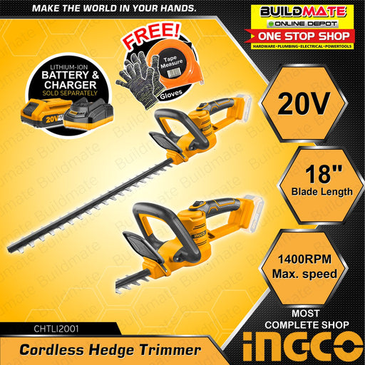 INGCO Lithium-Ion Cordless Hedge Trimmer 20V CHTLI2001 POWERSHARE + FREE TAPEMEASURE & GLOVES IPT