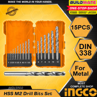 INGCO 15 PCS HSS M2 Drill Bit Set 1mm to 12mm For Metal DIN 338 AKDL51502 •BUILDMATE• IHT SPECIFICATIONS: 15pcs HSS M2 drill bits set Same as BOS...