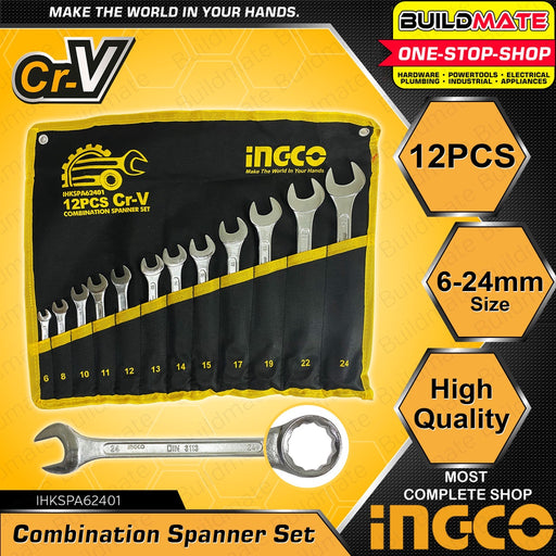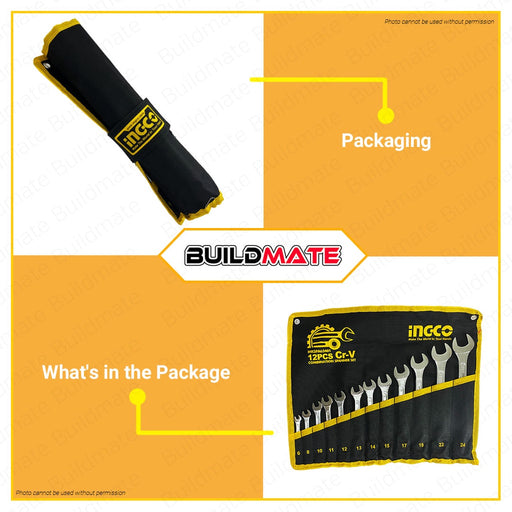 INGCO 12 PCS 6-24mm Combination Spanner Set Wrench Cr-V Heat Treated IHKSPA62401 •BUILDMATE• IHT2