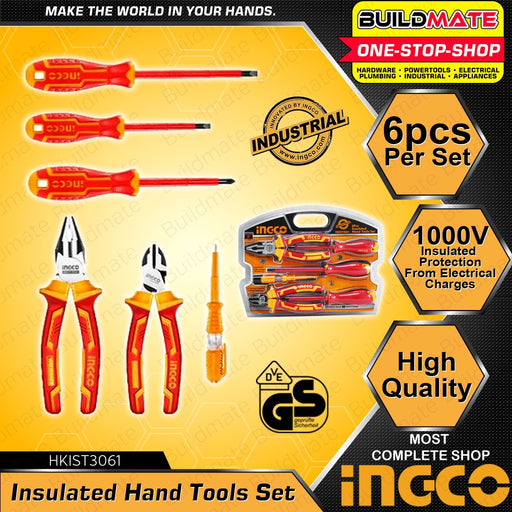 INGCO 6 PCS Insulated Hand Tool Set HKIST3061 •BUILDMATE• IHT SPECIFICATIONS: ►6 PCS/SET ►1000V Insulated Protection from Electrical Charges ►1 P...