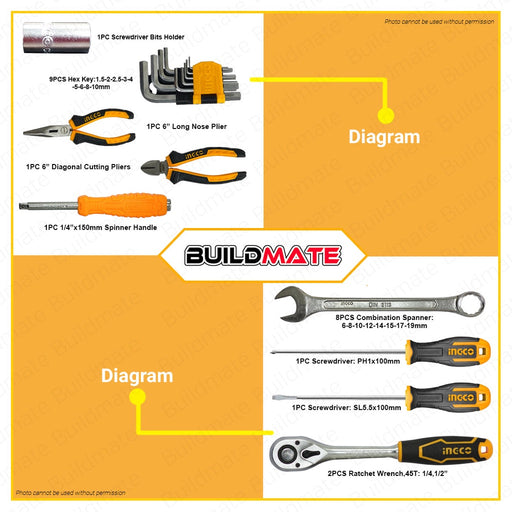 INGCO Hand Tools Set 100 PCS/SET HKTHP1001 100% ORIGINAL / AUTHENTIC •BUILDMATE• IHT
