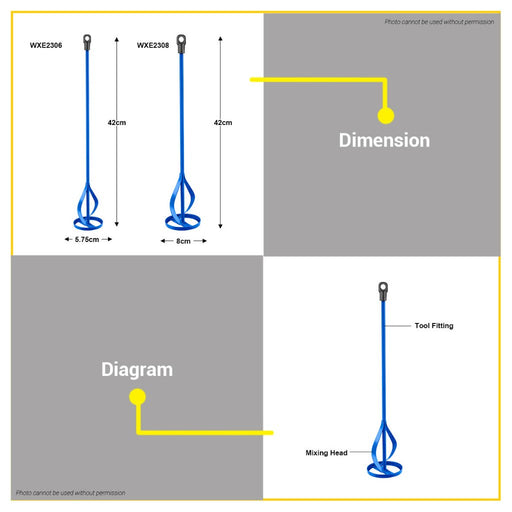 Buildmate Online DepotBUILDMATE Wadfow Mix Paddle 400MM x 60MM / 80MM Diameter Stirring Mixing Rod Mixer Rubber Hanging Hole WXE2306 / WXE2308 - WHTAVAILABLE IN:►60MM WX...