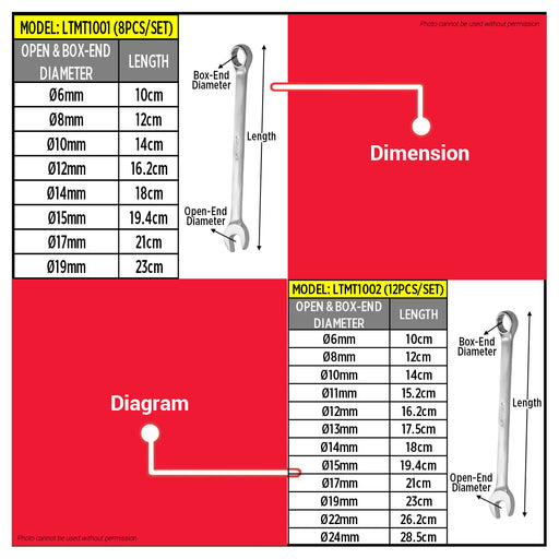 LOTUS 8pc & 12pc Combination Wrench Set For Automotive & DIY LHT SPECIFICATIONS:► Model: LTMT1002► 12 PCS► Chrome Vanadium Steel Forging fo...