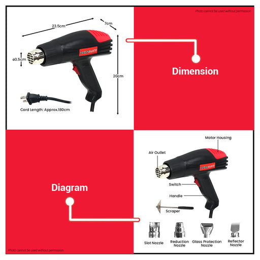 BUILDMATE Variable Heat Gun 2000W with Nozzles & Scraper for DIY, Shrink Wrap, Paint BM-HG2000 SPECIFICATIONS:► Model: HG2000► Air Flow: 300L/...