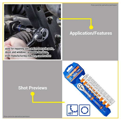 Buildmate Online DepotBUILDMATE Wadfow 12pcs Socket Set 1/4" | 3/8" | 1/2"With Ratchet Handle & Extension Bar Mechanics Socket Tool Kit for DIY Home Use & Automo...