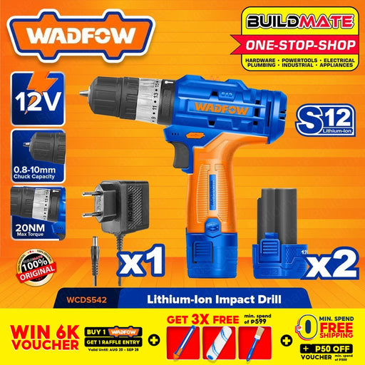 WADFOW Lithium-Ion Cordless Impact Drill Gun 12V With Battery & Charger WCDS542 •BUILDMATE• WCPT